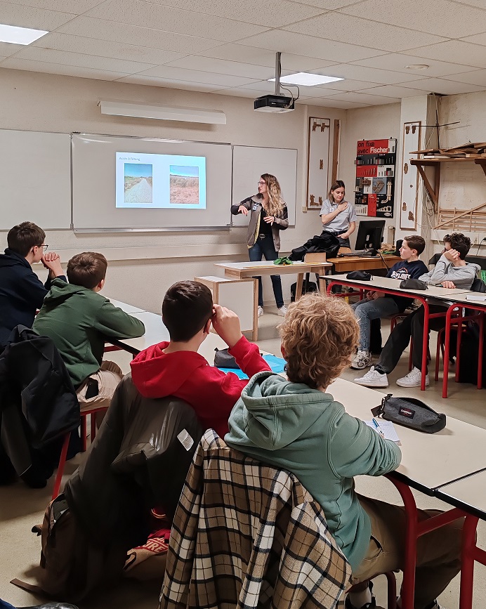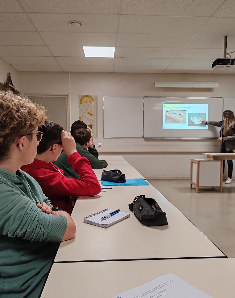 Débit et découpe au programme ! A partir de janvier les élèves de la classe de seconde bac pro TCB (Technicien Constructeur Bois) vont travailler en enseignement professionnel avec M. Selle et Lebas à la réalisation d’un radeau pour les sternes, appelées aussi hirondelles de mer. Ce projet s’inscrit dans le cadre d’une mission de protection de la faune et résulte d’un partenariat entre le lycée Doucet et le Symel, qui compte parmi ses missions la gestion des sites protégés du littoral de la Manche. Céline Leclerc (chargée de mission) et Aurélie Hamelin (garde du littoral) sont venues rencontrer les élèves pour leur présenter les enjeux d’un tel projet, à savoir amener un habitat artificiel sur l’étang de Gattemare pour permettre aux sternes de nicher. Une réalisation à découvrir lors de la période de nidification de 2027 …