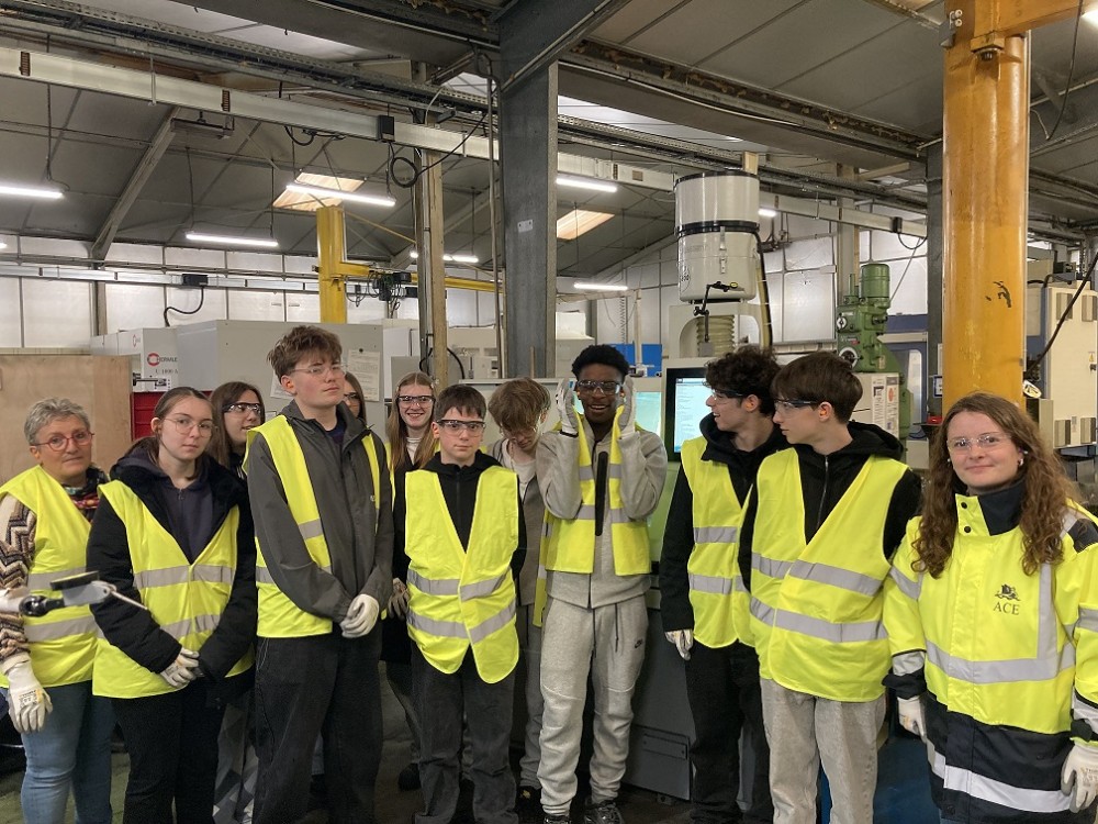 lycée Doucet à Equeurdreville accompagnés de leur professeur Sophie Cottebrune sont allés visiter l’entreprise ACE (association CMN Entrepose) située à Querqueville. Les élèves ont été vraiment impressionnés par les différentes activités de cette entreprise. En découvrant différents corps de métier tels que l’usinage et la tuyauterie, ils ont pu voir la place qu’occupaient les pièces mécaniques et leur intégration dans des éléments mécano soudés. Ils ont pu découvrir différents types de machines dont une fonctionnant par électroérosion au fil, ainsi que des fraiseuses et tours numériques de grande capacité. Le fonctionnement de l’entreprise nous a été présenté par Madame SIROT chargée des ressources humaines. Au cours de cette visite guidée, nous avons rencontré plusieurs anciens élèves de productique du lycée Edmond Doucet, qui ont pu échanger avec les élèves de 3ème, en leur précisant que la filière de Technicien en Réalisation de produits mécaniques offre de nombreux débouchés et que le lycée est régulièrement contacté par des entreprises locales à la recherche de jeunes titulaires du BAC pro.